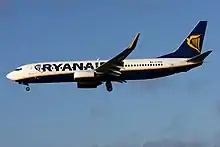 A Ryanair Boeing 737-800. Ryanair is the largest low-cost airline in Europe and second largest in the world.