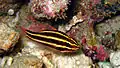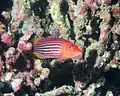 | Redbar anthias | Pseudanthias rubrizonatus | Yes | Tannish-pink with a single vertical red stripe and a dorsal fin with the skin between the rays pulled back like on a lionfish. | 12 cm (4.7 in) | |