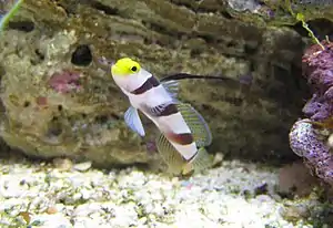 | Yellow assessor | Assessor flavissimus | Yes | Bright lemon yellow with peach fringing of the dorsal fin and around the eye. | 7 cm (2.8 in)[44] | |
