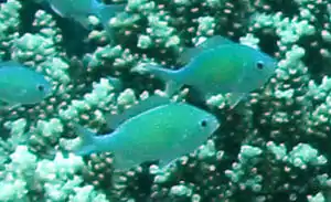 | Threadfin anthias | ![]() | Pseudanthias huchtii | Yes | Olive green with black caudal fin and red stripe running from the eye to the pectoral fin. | 12 cm (4.7 in) |