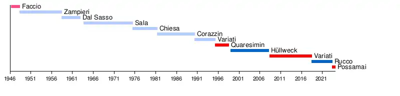 | 2 | Giuseppe Zampieri | 1948 | 1958 | DC |