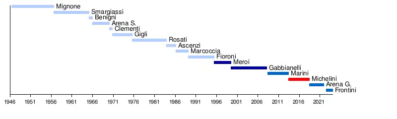| 14 | Leonardo Michelini | 12 June 2013 | 27 June 2018 | Independent (centre-left) |