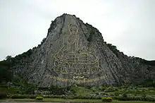Silhouette of Buddha on the side of Khao Chichan, Chonburi.