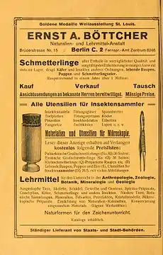 - Ernst August Böttcher, born 14 June 1870 Naturalien und Lehrmittel-Anstalt Berlin C. 2, Brüderstrasse 15.