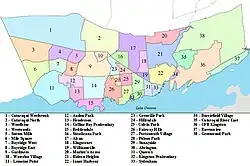 The City of Kingston has defined 45 distinct neighbourhoods based on census data from Statistics Canada. Different from the city's twelve electoral districts, the neighbourhoods as defined by the City all share common socio-demographic characteristics..[1] Detailed socio-demographic information on the city can be found in the Kingston Community Profile, 2009: A Socio-Demographic Analysis of Kingston, Ontario Canada. The profile is published by the Social Planning Council of Kingston and District (SPCKD).[2] While some of these neighbourhoods have established their own business improvement area, others are simply a designation given by the City of Kingston in recognition of their distinct attributes and characteristics