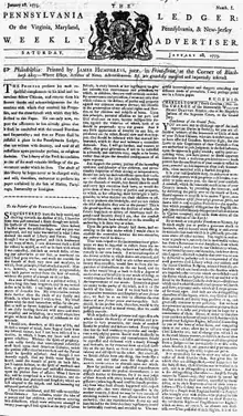 • The Pennsylvania Journal, and The Weekly Advertiser. W., Jan. 30, 1766-Sept. 1777.[2]
