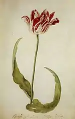 ![]() | Early Brabantian Tulip (tulip book, 1643) | 1643 | 38.2 cm x 27.2 cm | Frans Hals Museum | Haarlem | |