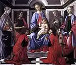 ![]() | The Virgin and Child with Four Angels and Six Saints | c. 1488 | Tempera on panel | 268 × 280 cm | Florence, Uffizi |