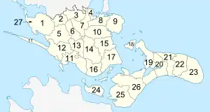 This is a list of parishes in Region Zealand. As of 2022, there are 2,133 parishes (Danish: Sogn) within the Church of Denmark, approximately 419 of which are within the Region Zealand.[1] They are listed below by municipality.