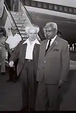 Seewoosagur Ramgoolam, the son of a Bihari immigrant, with David Ben Gurion at Lod airport, Israel, in 1962