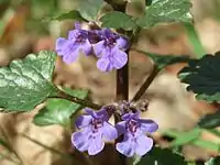| Glechoma hederacea | Ground-ivy | It has been used as a "lung herb".[82] Other traditional uses include as an expectorant, astringent, and to treat bronchitis.[83] The essential oil of the plant has been used for centuries as a general tonic for colds and coughs, and to relieve congestion of the mucous membranes. | ![]() |