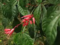 | Erythroxylum coca | Coca | Used as coca tea or chewed, traditionally as a stimulant to overcome fatigue, hunger, thirst, and altitude sickness.[64] Also used as an anesthetic and analgesic.[65] | ![]() |