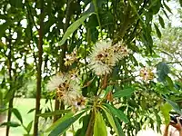 | Eucalyptus globulus | Eucalyptus | Leaves were widely used in traditional medicine as a febrifuge.[67] Eucalyptus oil is commonly used in over-the-counter cough and cold medications, as well as for an analgesic.[68] | ![]() |