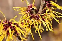 | Hamamelis virginiana | Common witch-hazel | It produces a specific kind of tannins called hamamelitannins. One of those substances displays a specific cytotoxic activity against colon cancer cells.[85] | ![]() |