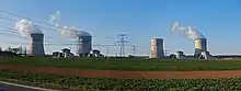 ![]() Tricastin NPP in the foreground (the 2 cooling tower belong to the old uranium enrichment plant in the background (which consumes 3/4 of the Tricastin Plant output)) |