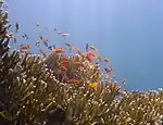 Fish near a modern Millepora species.