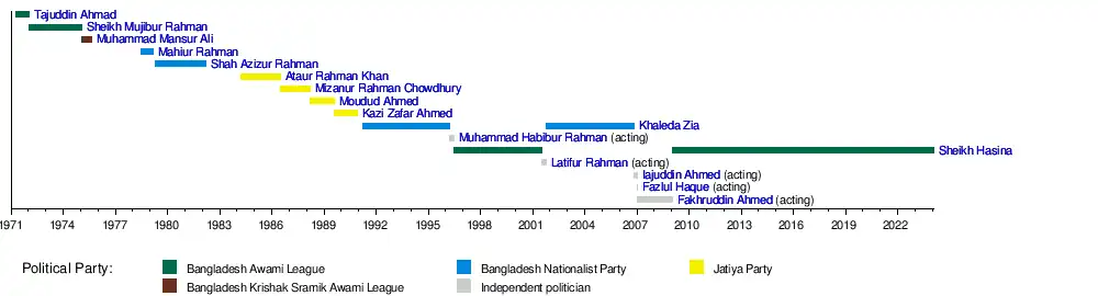 6 January 2009 | Incumbent | 15 years, 11 days | Bangladesh Awami League |