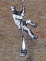 2021 | Banksy | Graffiti | Paint on brickwork | The mural of an escaping prisoner - possibly resembling famous inmate Oscar Wilde - appeared on the walls of the disused Reading jail on Monday 01 March 2021. Reading prison famously housed Irish writer Wilde between 1895 and 1897 and was immortalised by his poem Ballad of Reading Gaol, which reflected on the brutality of the Victorian penal system. | ||