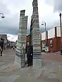 Mine worker's memorial | Quay Street, Ammanford | 2006 | Howard Boycott | Abstract sculpture | Slate and sandstone | ||||