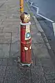 Painted bollards | Great Minster Street and The Square, Winchester 50°58′10″N 1°21′12″W / 50.9694°N 1.3532°W |