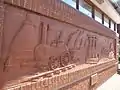 1999 | John McKenna | Frieze | Brick | 110 centimetres (43 inches) high x 500 centimetres (200 inches) wide | Rugby Borough Council | Depicts Rugby's heritage, from canals to railways, to jet engines etc.[28][29] | |
