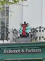 1965 | Sculpture | Metal, painted | 100 centimetres (39 inches) high x 120 centimetres (47 inches) wide, approx. | Warwick District Council and Royal Leamington Spa Town Council | Two figures, wearing helmets and fireman's uniforms, are either side of a cart. Moved to Euston Place in 1965. It was the premises on Locke and England. The emblem was previously at 166 Parade when it was 33 Lower Parade (the firm moved there in 1875).[14] |