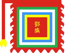 ![]() | Đặng (鄧) surname flag (Cờ họ Đặng).[5] | A Vietnamese five-colour flag with the Chữ Hán "鄧族". Influences: |