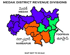 Revenue Divisions are the administrative divisions in districts of some of the Indian states. These divisions are sub-divided into mandals. There are 74 revenue divisions in Telangana. Revenue Divisional Officer (RDO) is the head of the division.[1]