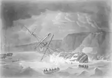 Pamphlet  United Kingdom The sloop was driven ashore and wrecked in Deadman's Bay, Devon with the loss of a crew member.[18]