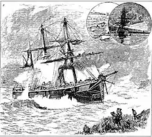 | Huascar | The steamship exploded and sank with the loss of two of her crew.[11] | |