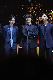 He serves as one of the primary songwriters for the pop and hip hop boy band BTS, of which he is a member, appearing as a credited writer on every album released by the group since their debut in 2013.[8] On these albums he primarily works with the Big Hit production team, including company founder Bang Si-hyuk, and fellow BTS rappers RM and Suga. The trio later collaborated to release the trap diss track "Ddaeng", produced by Suga and Korean record producer Jang Yi-jeong and inspired by traditional Korean instrumentals.[9] He has also penned music for other musical endeavors by BTS members, co-writing the song "Otsukare" for the duo Sope, comprising himself and Suga. In addition, he composed much of the melody for the 2016 ballad "Awake", performed by bandmate Jin as his first solo song. In January 2020, the Korea Music Copyright Association (KOMCA) promoted J-Hope to a full member of the organization due to the worldwide popularity of the BTS songs "Boy with Luv", "Home", and "Blood Sweat & Tears" which he co-wrote.[10]