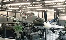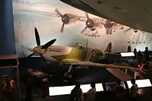 - Spitfire LF Mk.XVIe RR263. Built in 1944 and delivered to the RAF that year with 2nd Tactical Air Force. The Spitfire was loaned to Vickers Supermarine for experimental reasons in 1949 before moving to storage. Used as a static backdrop for the Reach for the Sky movie and later was on a plinth at RAF Kenley as TB597, codes GW-B. Later overhauled and repainted again as TB597 as GW-B before being put on display at Musée de l’air et de l’espace, Le Bourget.[56]