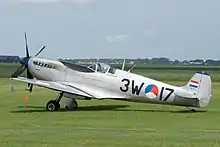 - Spitfire FR Mk.XVIIIe TP263, Displayed at the National War & Resistance Museum, Overloon. Ex-Indian Air Force HS649, rebuilt to represent a Mk.XIVc. Wears the spurious serial NH649, with the codes 3W-F of No.322 (Dutch) Squadron.[96]