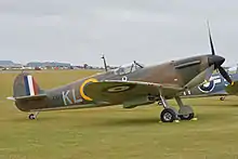 - Spitfire Tr.9 MH367 (ZK-WDQ). Owned by aerobatic pilot Doug Brooker and arrived in New Zealand on 11 September 2008. It wears RAF desert colours with the markings of FL-A, a Mk IX EN520 flown by the New Zealand Squadron Leader Colin Gray, C/O of 81 Squadron when based in Tunisia in mid-1943.[97] On 15 January 2009, during a transit flight from Auckland, the Spitfire suffered a heavy forced landing on Hood Aerodrome, near Masterton. The propeller, undercarriage and some fuel lines were damaged but the aircraft was repaired.[98] A second landing accident at Ardmore Airport on 2 December 2009 resulted in damage to the undercarriage and propeller.[99] On 12 June 2011 the aircraft suffered yet another landing accident, this time tipping onto its nose after landing at Ardmore, damaging the propeller[100]