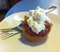 United Kingdom | Made from apples and Victoria sponge cake mixture. |
