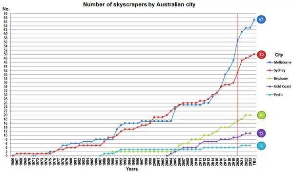 | 43 | Quay Quarter Tower | ![]() | Sydney | 212.92 (698.5) | 52 | 1976/2022 | Best Tall Building Worldwide 2023 Winner, 2023 CTBUH Awards. | [66] | |
