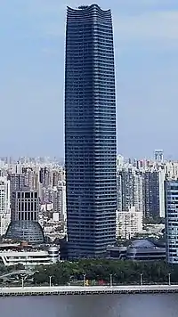 | 14 | Guangzhou International Finance Center | 广州国际金融中心 | ![]() | Guangzhou | 438.6 m (1,439 ft) | 101 | 2010 | 438.6 m (1,439 ft) | 415.1 m (1,362 ft) |