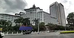 A 2014 National Geographic article, "The Race to Save Architecture in Myanmar's Biggest City". The National Geographic. 2014-11-13., identifies the Sakura Tower as the tallest building in Yangon. - ↑ Per the hotel's owner Keppel Land, "Sedona Hotel Yangon". Retrieved 2020-04-25., the new 431-room Inya wing was opened in May 2016.