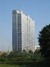 | Wenner-Gren Center | Stockholm | 75.70 m (248 ft) | 0 m (0 ft) | 26 | 1961 | [note 1] | |
