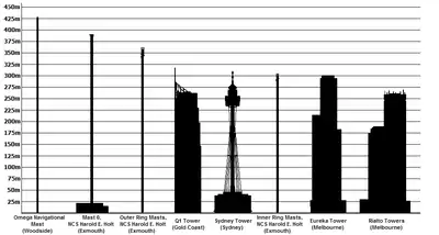 This is a list of the tallest structures in Australia. This list contains guyed masts, towers, skyscrapers and chimneys with a height of 200 metres or more.