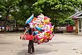 Veliyangadi is not a typical 'place of interest' to visit. The noise, rush and heat of this narrow lane would test any visitor's mettle. Nevertheless, not many streets can boast a 600-year-old history[2] and still be functioning as one of the main commercial centre of a city. In spite of creeping signs of modernity over hundreds of years, this crowded part of the city offers the best chance to visualize daily life at a commercial hub in medieval Calicut. Muslim, Jain and Hindu seths, Gujarathi and Marwari moneylenders and Tamil and Andhra Chettis can be seen busy with their businesses, as they did for centuries. Merchants and accountants still use a unique system of finger-code language as noted by Ma Huang of Zheng He's fleet in 1403. The legend has it that the first secretary of the Zamorin, Mangat Achan, after a long penance had the goddess of wealth Lakshmi appear before him. He then made her promise to wait until he returned but went home and committed suicide. Unable to break her promise, it is said, Lakshmi stayed permanently in Veliyangadi.