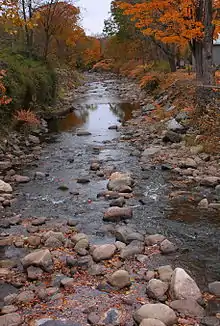 Bowman Creek's main stem is designated as a High-Quality Coldwater Fishery and the watersheds of all but two of its tributaries have the same designation.[4] The watersheds of the remaining two tributaries, Sorber Run and Cider Run, are designated as Exceptional Value waters, with standards even higher than those of High-Quality Coldwater Fisheries.[4][5] Additionally, these two tributaries are the only Wilderness Trout Streams in Wyoming County.[6] Wild trout naturally reproduce throughout all of the creek's tributaries.[7] A total of ten named streams in the watershed of Bowman Creek are classified by the Pennsylvania Fish and Boat Commission as Class A Wild Trout Waters.[8] Most hold this designation for brook trout only, but Sugar Hollow Creek and a section of Roaring Run hold the designation for rainbow trout, either instead of or in addition to brook trout.[8]