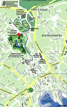 The museum is located at the northern end of the Park of Tórshavn nearby the Nordic House in the Faroe Islands.