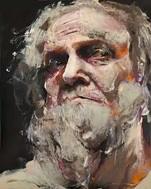 With “The Trilogy of the Doubt”, a collection composed by socially inspired triptych paintings about power, injustice and ignorance, Cabellut received attention both in her native Spain in The Netherlands.[11] The portrait collection “Dried Tear” (2013) expresses Cabellut's fascination and admiration for Asian culture.[12] Cabellut's series about the Dutch Golden Age entitled “The Black Tulip” (2014) was inspired by one of the most famous national symbols of the Netherlands.[13]