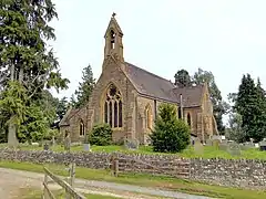 There are five listed buildings in the parish. The 1869 Anglican Church of St Mary by W. Chick on Ruff Lane is rated Grade II*,[18] its churchyard gate piers and walls, again possibly 1869 by W. Chick, being Grade II.[19] Other Grade II buildings are 1 mile (2 km) south-east from the church at Cider Mill Farm on the Wriggle Brook, being the 17th-century and later New Mills Farmhouse,[20] with its associated 1801-dated barn,[21] and granary with former cider house, both c.1800, and a store at the time of listing.[22][23]
