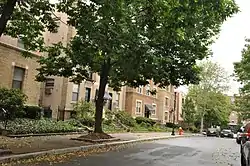 The historic district includes a row of brick apartment houses, three and four stories in height, on the north side of Farmington Avenue, just east of Loraine Street. Two prominent buildings are on the south side, on either side of Owen Street. These are the most architecturally sophisticated of the district's buildings, showing a diversity of styles including the Renaissance Revival, Chicago School, and the Jacobethan. Owen, Frederick, and Denison Streets include a mix of pre-World War II and post-World War II buildings; the latter are excluded from the district. These, while still showing some architectural style, are generally simpler than those facing Farmington Avenue.[2]