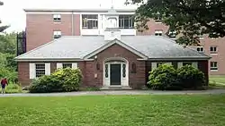 The Little Red Schoolhouse, also known as Amherst Day School, was a historic schoolhouse on the campus of Amherst College in Amherst, Massachusetts. Designed by the noted academic architect James Kellum Smith of the firm McKim, Mead and White, the building was completed in 1937. The Georgian Revival-style schoolhouse is of brick, steel and concrete construction,[1] and was built from the ground up to serve preschool children. Features include built-in wood cubbies in the hallway for storing coats and belongings, toddler-sized bench seats around the periphery of the main meeting room, and windows placed at a low height so that children can look out.[2] Referring to the schoolhouse in a 1951 publication, former Amherst College President Stanley King wrote, "No building on the Amherst campus is better built."[3]