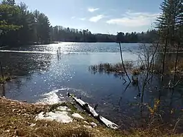 The surrounding region and canopy over the lake is a mix of hardwood and coniferous forests, including speckled alder, white pine, and white and black spruce trees. Fish found in the lake include the central mudminnow, rock bass, yellow perch, and largemouth bass.[2]