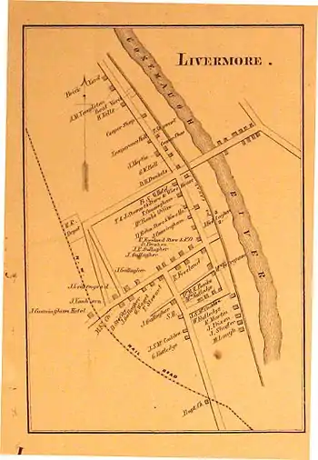 The town was established along the Conemaugh River within Derry Township in 1827 by John Livermore, naming the town after himself.[2] The Pennsylvania legislature had established the Board of Canal Commissioners for the Commonwealth in 1825, and authorized a public canal and railroad project across the state, the Pennsylvania Canal system. The Main Line Canal's Western Division, which stretched 103 miles from Johnstown to Pittsburgh, was constructed past Livermore along the Conemaugh.[3]