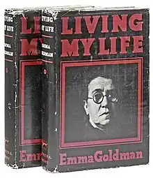 Living My Life is the autobiography of Lithuanian-born anarchist Emma Goldman, who became internationally renowned as an activist based in the United States. It was published in two volumes in 1931 (Alfred A. Knopf) and 1934 (Garden City Publishing Company). Goldman wrote it while living in Saint-Tropez, France, following her disillusionment with the Bolshevik role in the Russian Revolution.